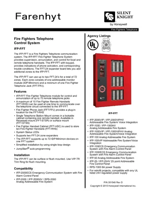 Datasheet for the Silent Knight IFP-FFT Telephone System, published in 2015. Document No: 351549, Rev: D. 28 models including IFP-FFT, FFT-24, IDP-Minimon and 25 additional variants. Product features, environmental operating limits, and compatibility data.