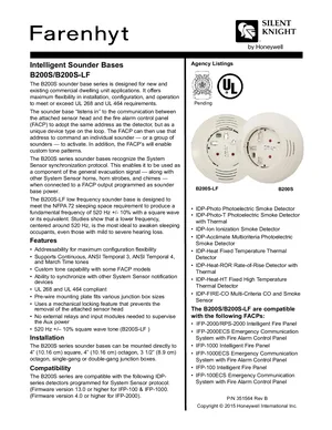 Datasheet for the Silent Knight B200S and B200S-LF, published in 2015. Document No: 351564, Rev: B. Models B200S and B200S-LF. Detailed technical specifications, electrical ratings, and agency listings.
