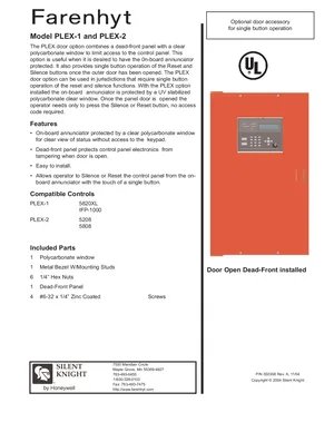 Datasheet for the Silent Knight PLEX-1 and PLEX-2, published in 2004. Document No: 350358, Rev: A. 6 models including PLEX-1, PLEX-2, 5820XL and 3 additional variants. Product features, environmental operating limits, and compatibility data.