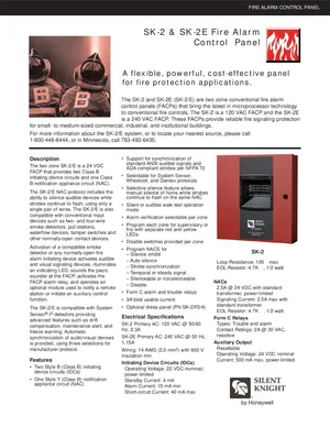 Datasheet for the Silent Knight SK-2, published in 2006. Document No: 350304, Rev: B. 8 models including SK-2, SK-2E, SK-DP2/4 and 5 additional variants. Product features, environmental operating limits, and compatibility data.
