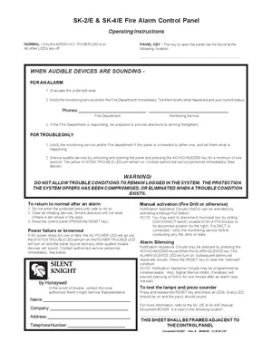 Operating Instructions for the Silent Knight SK-2/E and SK-4/E, published in 2005. Document No: 52607, Rev: A. Models SK-2/E, SK-4/E and SK-4XTM. Hardware installation, alarm/fault management, and advanced system configuration.