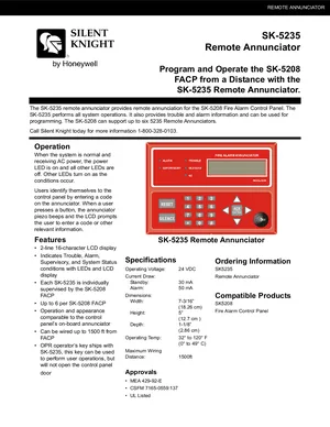 Datasheet for the Silent Knight SK-5235, published in 2010. Document No: 350321, Rev: C. Models SK-5235, SK-5208 and SK5235. Engineering specifications, wiring diagrams, and mounting dimensions.