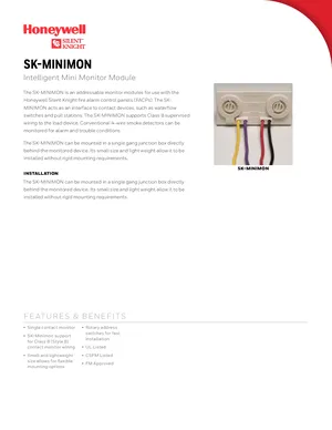 Datasheet for the Silent Knight SK-MINIMON, published in 2017. Document No: 350133, Rev: G. 9 models including SK-MINIMON, 6820, 6820EVS and 6 additional variants. Detailed technical specifications, electrical ratings, and agency listings.