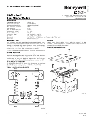 Installation Manual for the Silent Knight SK-Monitor-2, published in 2017. Document No: I56-3435-004. Models SK-Monitor-2 and SMB500. Physical installation guide, backbox dimensions, and cabling specifications.