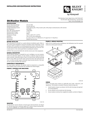 Installation Manual for the Silent Knight SK-Monitor, published in 2009. Document No: I56-3442-000. Model SK-Monitor. Physical installation guide, backbox dimensions, and cabling specifications.