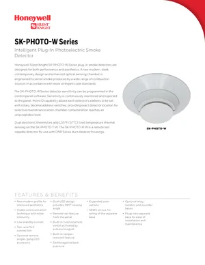 Datasheet for the Silent Knight SK-PHOTO-W Series, published in 2018. Document No: 351634, Rev: A. 39 models including SK-PHOTO-W, SK-PHOTO-R-W, SK-PHOTO-T-W and 36 additional variants. Detailed technical specifications, electrical ratings, and agency listings.