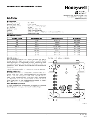 Installation Manual for the Silent Knight SK-Relay, published in 2017. Document No: I56-3438-004, Rev: 04-12. Model SK-Relay. Mounting instructions, wiring diagrams, and system power-up procedures.