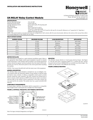 Installation Manual for the Silent Knight SK-RELAY, published in 2022. Document No: I56-3438-005, Rev: 04/26/2022. Model SK-RELAY. Hardware installation, terminal connections, and environmental requirements.