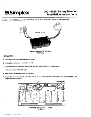 Installation Manual for the Simplex 2001-2069, published in 1986. Document No: FA2-21-103 (574-051), Rev: Ed 8 86. Models 2001-2069 and 2001-8021. Mounting instructions, wiring diagrams, and system power-up procedures.