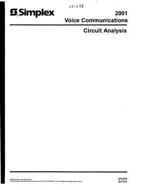 Manual for the Simplex 2001 Series Circuit Analysis, published in 1981. Document No: 575-872, Rev: Ed 9 81. 36 models including 2001, 2001-6005, 2001-6001 and 33 additional variants. System overview, features and capabilities, and basic operation.