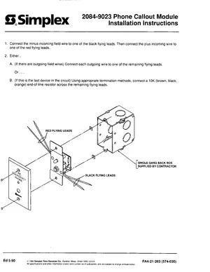 Installation Manual for the Simplex 2084-9023, published in 1990. Document No: FA4-21-263, Rev: Ed 5 90. Model 2084-9023. Hardware installation, terminal connections, and environmental requirements.