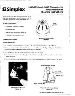 Manual for the Simplex 2098-9635 and 2098-9636 Cleaning Instructions, published in 1986. Document No: PER-51-004, Rev: Ed 5 86. Models 2098-9635 and 2098-9636. Capabilities, specifications summary, and usage notes.