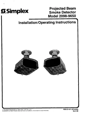 Installation and Operations Manual for the Simplex 2098-9650, published in 1990. Document No: PER-21-011, Rev: Ed 5 90. 7 models including 2098-9650, 2098-9802, 2098-9801 and 4 additional variants. System installation procedures and daily operating instructions.