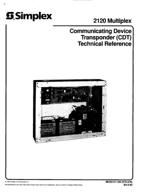 Technical Reference Manual for the Simplex 2120 CDT, published in 1992. Document No: MUX2-21-106, Rev: Ed 9 92. 11 models including 2120, CDT, 562-562 and 8 additional variants. Comprehensive system reference, electrical characteristics, and interface details.