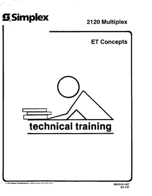 Technical Reference Manual for the Simplex 2120 Multiplex ET Concepts, published in 1987. Document No: MUX2-91-007, Rev: Ed 3 87. 20 models including 2120, ET, BT and 17 additional variants. Advanced technical data, communication protocols, and design criteria.