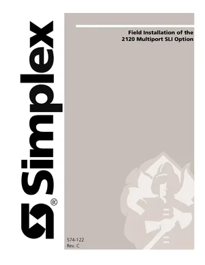 Installation Manual for the Simplex 2120 Multiport SLI. Document No: 574-122, Rev: C. 7 models including 2120, 4100+, 4120 and 4 additional variants. Physical installation guide, backbox dimensions, and cabling specifications.