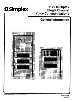 Technical Reference Manual for the Simplex 2120 Series, published in 1987. Document No: MUX2-11-003, Rev: Ed 3 87. 19 models including 2120, 2001, 2001-6030 and 16 additional variants. Comprehensive system reference, electrical characteristics, and interface details.
