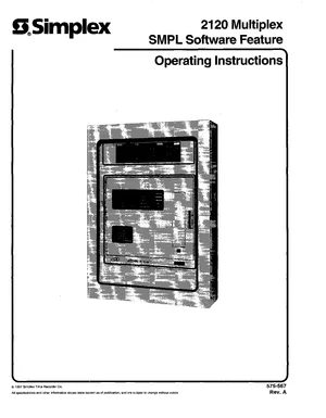 Operations Manual for the Simplex 2120 SMPL Software Feature, published in 1997. Document No: 575-567, Rev: A. Model 2120. User interface controls, event handling, and routine maintenance tasks.