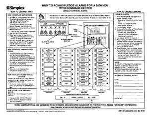 Operations Manual for the Simplex 2500 NDU ACKNOWLEDGE ALARMS, published in 1993. Document No: NET-31-005, Rev: Ed 6 93. Model 2500 NDU. User interface controls, event handling, and routine maintenance tasks.