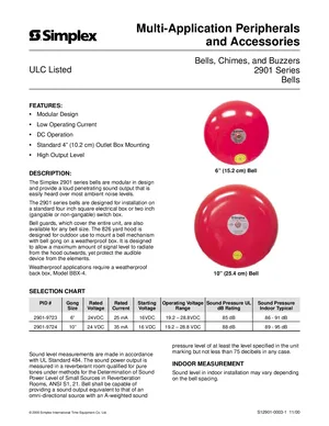 Datasheet for the Simplex 2901 Series Bells, published in 2000. Document No: S12901-0003-1, Rev: 11/00. Models 2901-9723, 2901-9724 and BBX-4. Detailed technical specifications, electrical ratings, and agency listings.