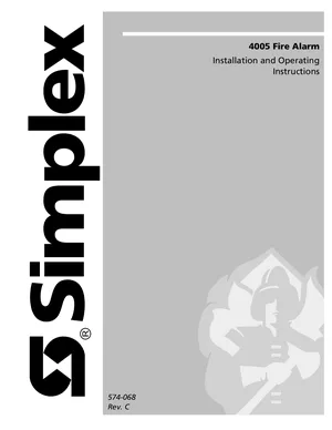 Installation Manual for the Simplex 4005 Series, published in 2000. Document No: 574-068, Rev: C. 16 models including 4005, 4005-9101, 4005-9102 and 13 additional variants. Mounting instructions, wiring diagrams, and system power-up procedures.