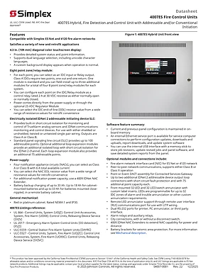 Datasheet for the Simplex 4007-9101 Series, published in 2025. Document No: S4007-0001, Rev: 22. 4 models including 4007-9101, 4007-9101BA, 4007-9102 and 1 additional variants. Detailed technical specifications, electrical ratings, and agency listings.