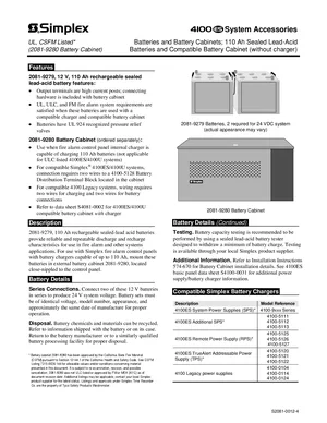 Datasheet for the Simplex 4100ES System Accessories, published in 2011. Document No: S2081-0012, Rev: 4. 17 models including 2081-9279, 2081-9280, 4100ES and 14 additional variants. Engineering specifications, wiring diagrams, and mounting dimensions.