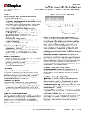Datasheet for the Simplex 4906 Series Multi-Candela Visible Only Appliances, published in 2026. Document No: S4906-0004, Rev: Rev. 5. Models 4906-9202 and 4906-9204. Engineering specifications, wiring diagrams, and mounting dimensions.