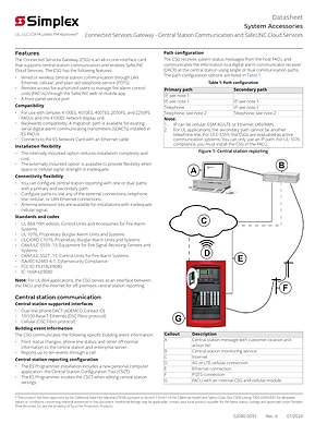 Datasheet for the Simplex Connected Services Gateway, published in 2024. Document No: S2080-0091, Rev: 6. Model CSG. Engineering specifications, wiring diagrams, and mounting dimensions.