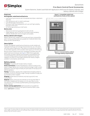 Datasheet for the Simplex System Batteries, published in 2024. Document No: S2081-0006, Rev: 27. 20 models including 2081-9272, 2081-9286, 2081-9274 and 17 additional variants. Detailed technical specifications, electrical ratings, and agency listings.