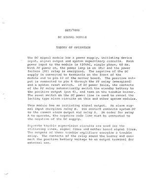 Technical Reference Manual for the Standard Electric Time SET/7000 DC Signal Modules, published in 1972. 11 models including SET/7000, SFA-801, SFA-801-RH and 8 additional variants. System architecture, detailed circuit analysis, and engineering specifications.