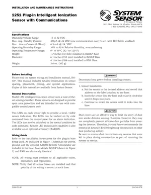 Installation Manual for the System Sensor 1251, published in 2000. Document No: I56-548-07R, Rev: 07R. 4 models including 1251, B210LP, B501 and 1 additional variants. Mounting instructions, wiring diagrams, and system power-up procedures.