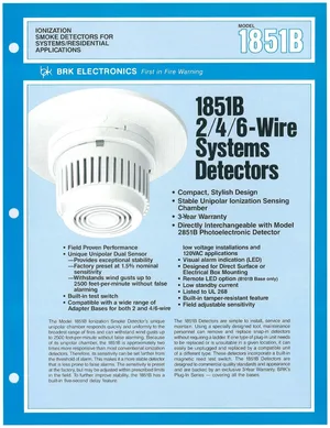 Datasheet for the System Sensor 1851B and 2851B Detectors, published in 1985. Document No: C1851B, Rev: 12/85. 17 models including 1851B, 2851B, 2851BTH and 14 additional variants. Engineering specifications, wiring diagrams, and mounting dimensions.