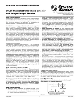 Installation Manual for the System Sensor 2012H, published in 1999. Document No: I56-1216-02, Rev: 02. 5 models including 2012H, A77-727-01, 1012 and 2 additional variants. Mounting instructions, wiring diagrams, and system power-up procedures.