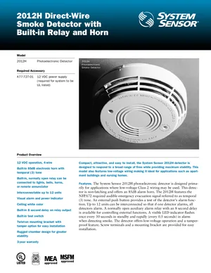 Datasheet for the System Sensor 2012H Smoke Detector, published in 1999. Document No: A05-238-03, Rev: 03. Models 2012H and A77-727-01. Detailed technical specifications, electrical ratings, and agency listings.