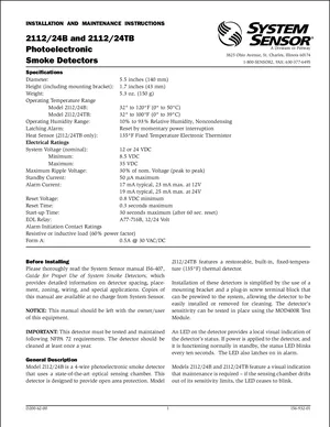 Installation Manual for the System Sensor 2112/24B and 2112/24TB, published in 1996. Document No: I56-932-01, Rev: 01. Models 2112/24B and 2112/24TB. Hardware installation, terminal connections, and environmental requirements.