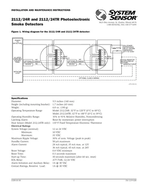 Installation Manual for the System Sensor 2112/24R and 2112/24TR, published in 2001. Document No: I56-1239-02R, Rev: 02R. Models 2112/24R and 2112/24TR. Physical installation guide, backbox dimensions, and cabling specifications.