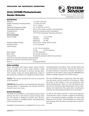 Installation Manual for the System Sensor 2112/24TSRB, published in 1997. Document No: I56-930-02, Rev: 02. Model 2112/24TSRB. Hardware installation, terminal connections, and environmental requirements.