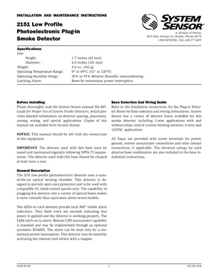 Installation Manual for the System Sensor 2151, published in 2000. Document No: I56-581-05R, Rev: 05R. Model 2151. Physical installation guide, backbox dimensions, and cabling specifications.