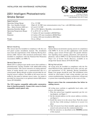 Installation Manual for the System Sensor 2251, B210LP and B501. Document No: I56-582-04, Rev: 04. Models 2251, B210LP and B501. Mounting instructions, wiring diagrams, and system power-up procedures.
