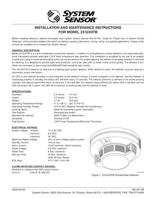 Installation Manual for the System Sensor 2312/24TB, published in 1993. Document No: I56-431-06, Rev: 06. Model 2312/24TB. Hardware installation, terminal connections, and environmental requirements.