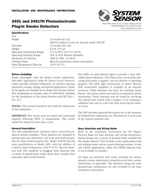 Installation Manual for the System Sensor 2451 and 2451TH, published in 2004. Document No: I56-277-10R, Rev: 10R. Models 2451 and 2451TH. Hardware installation, terminal connections, and environmental requirements.