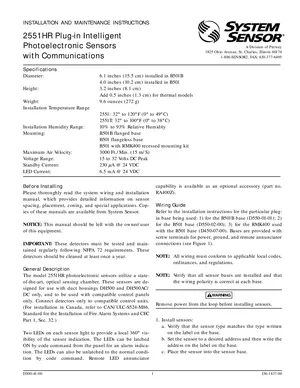 Installation Manual for the System Sensor 2551HR, published in 1999. Document No: I56-1437-00, Rev: 00. Models 2551HR, 2551 and 2551T. Mounting instructions, wiring diagrams, and system power-up procedures.