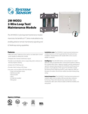 Datasheet for the System Sensor 2W-MOD2, published in 2009. Document No: A05-0349-003. Model 2W-MOD2. Detailed technical specifications, electrical ratings, and agency listings.