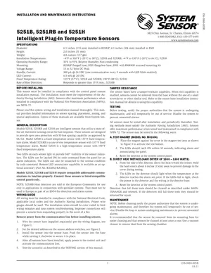 Installation Manual for the System Sensor 5251B, 5251RB and 5251H, published in 2016. Document No: I56-3860-005R, Rev: 005R. 9 models including 5251B, 5251RB, 5251H and 6 additional variants. Physical installation guide, backbox dimensions, and cabling specifications.