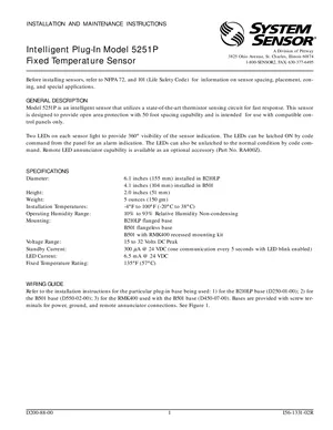 Installation Manual for the System Sensor 5251P, published in 2000. Document No: I56-1331-02R, Rev: 02R. 6 models including 5251P, B210LP, B501 and 3 additional variants. Physical installation guide, backbox dimensions, and cabling specifications.