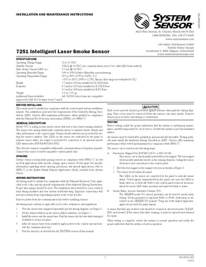 Installation Manual for the System Sensor 7251 Series, published in 2016. Document No: I56-0058-009, Rev: 009. 8 models including 7251, RA400Z, RA100Z and 5 additional variants. Physical installation guide, backbox dimensions, and cabling specifications.