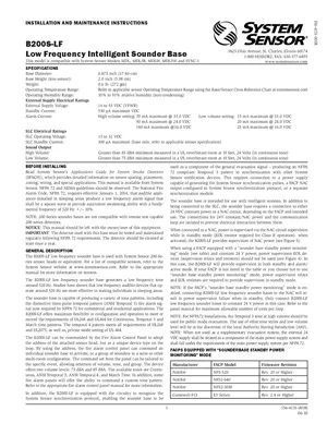Installation Manual for the System Sensor B200S-LF, published in 2016. Document No: I56-4151-003R, Rev: 06-10. 8 models including B200S-LF, MDL, MDL3R and 5 additional variants. Hardware installation, terminal connections, and environmental requirements.