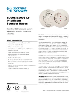 Datasheet for the System Sensor B200S Series Bases, published in 2015. Document No: SPDS53602, Rev: 02/15. Models B200S, B200S-LF and B200SA. Product features, environmental operating limits, and compatibility data.