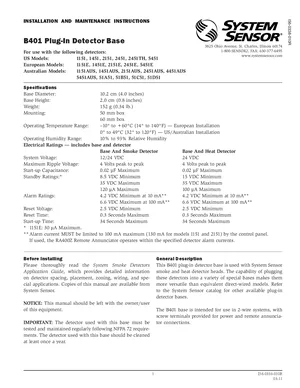 Installation Manual for the System Sensor B401, published in 2016. Document No: I56-0338-010R, Rev: 010R. 23 models including B401, 1151, 1451 and 20 additional variants. Mounting instructions, wiring diagrams, and system power-up procedures.